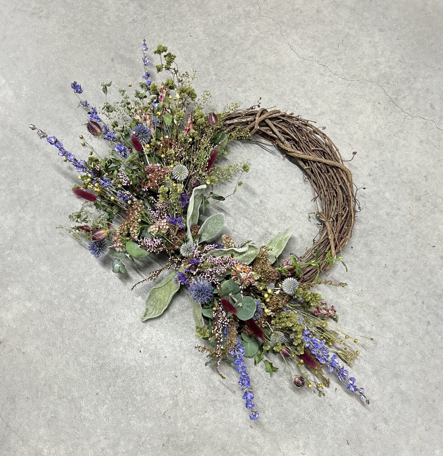 Our everlasting wreaths are seasonal and designed to retain their rich, natural color—Each piece is thoughtfully arranged with naturally dried florals for an organic, timeless look. We incorporate fresh ingredients to add dimension and additional interest. They are perfect for indoor decor. The flowers will retain their color for up to a year or more, as long as they are not directly exposed to sunlight. If you have a preference for colors, please add to the notes in the checkout section.