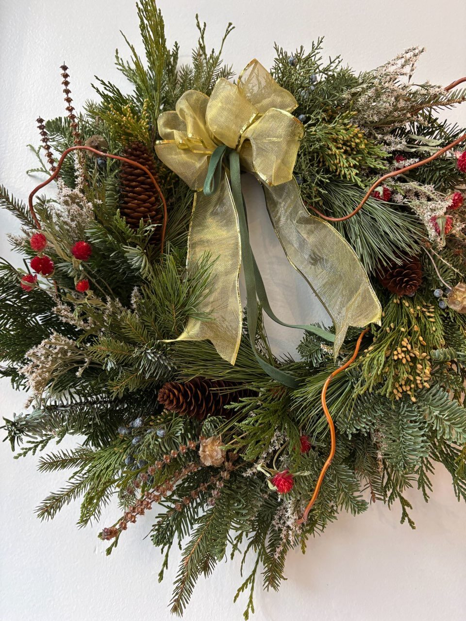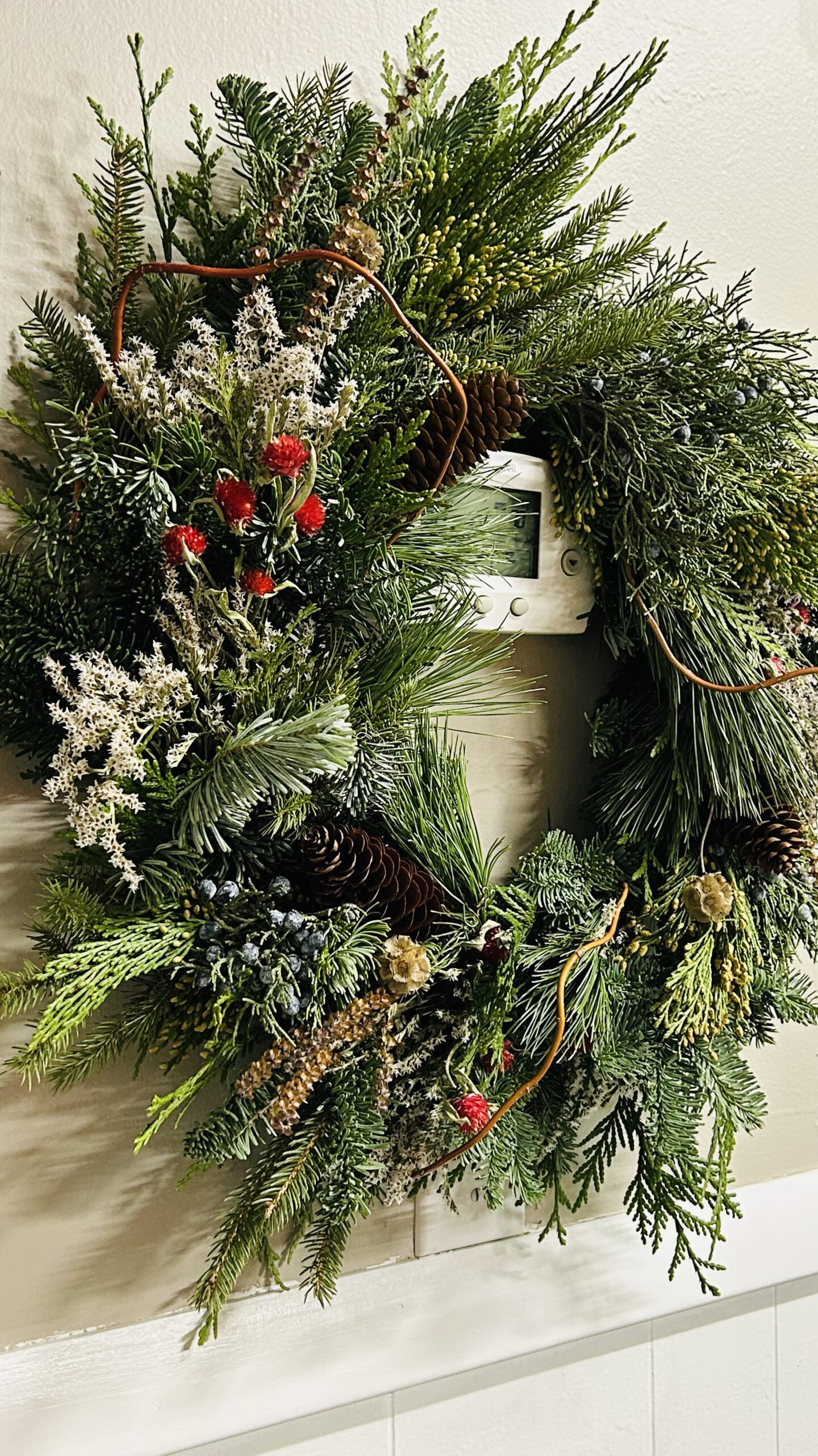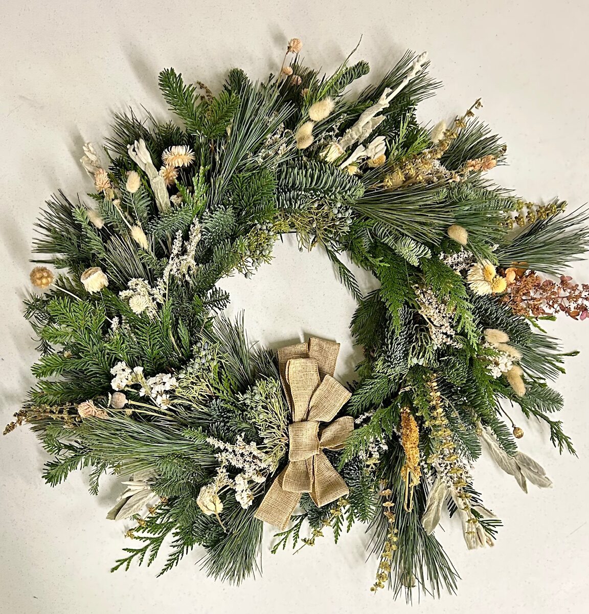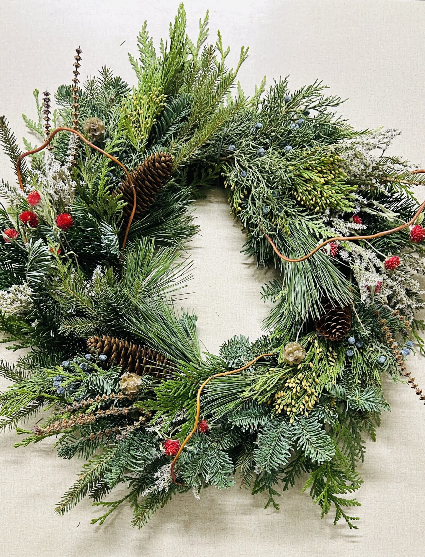 Pre order your winter wreath by Sunday, December 7th. Please select your preferred botanical colors (if any), pick up location or delivery. If you select delivery, please check the appropriate box at check out. The local delivery fee is $15. The outer diameter will be at least 22″.
